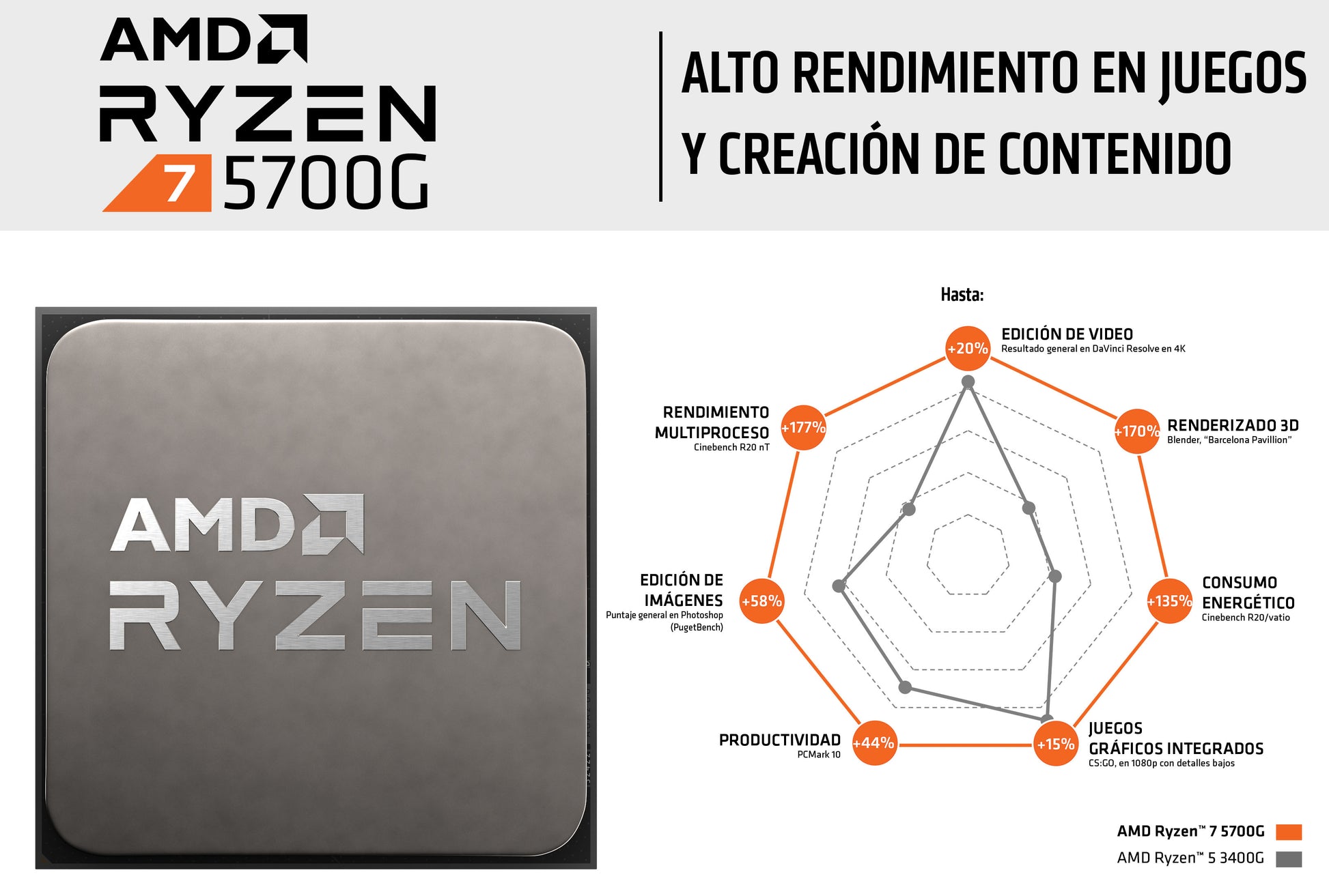 PROCESADOR AMD RYZEN 7 5700G AM4 8CORE 3.8GHZ 100-100000263BOX